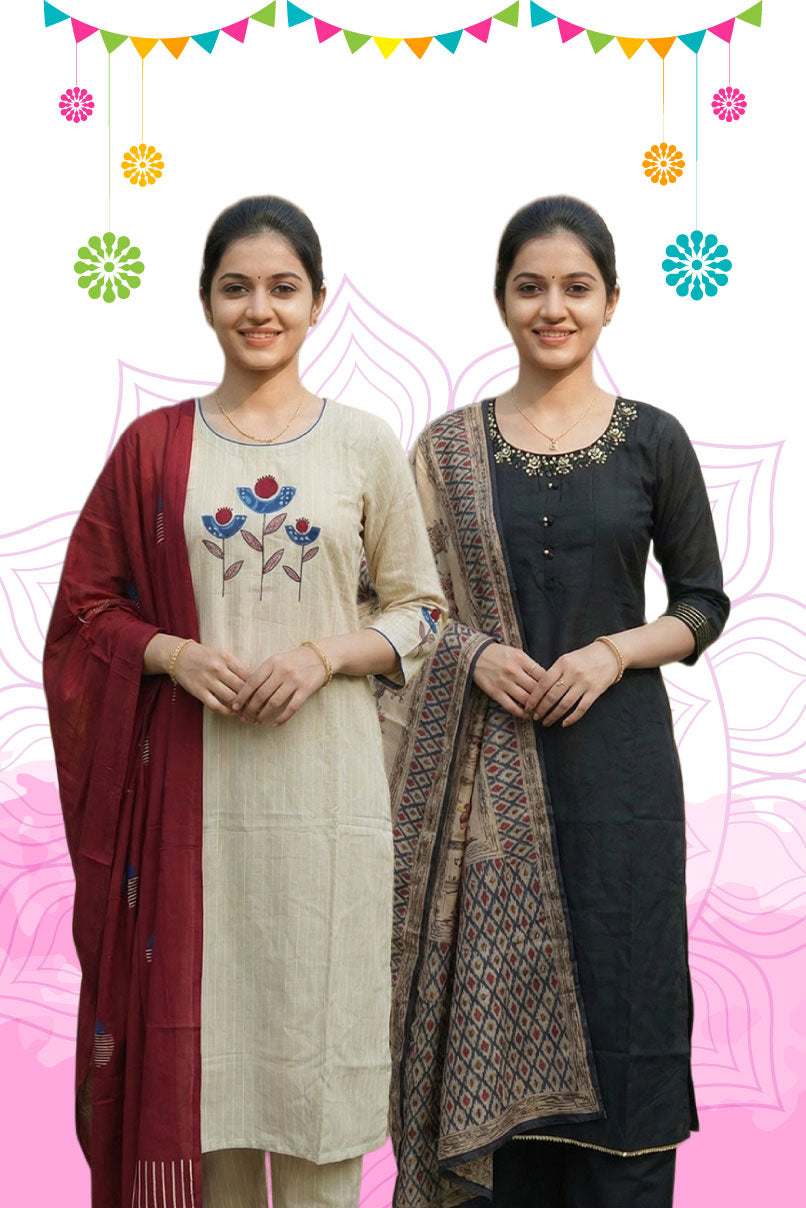 Black Applique Patch with Kalamkari Border print Long kurti set